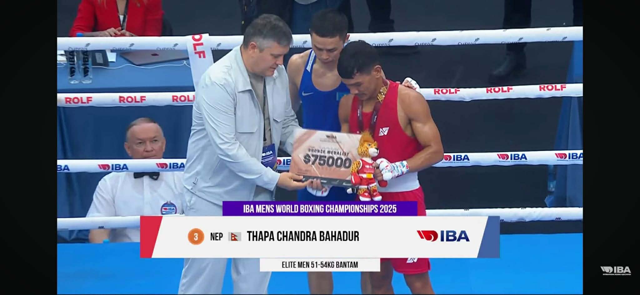 सेमीफाइनलमा काजाकस्तानका बलिया प्रतिस्पर्धीसँग कडा भिडन्त गरे पनि यात्रा त्यहीँ समाप्त भयो। यद्यपि, यो पदक नेपालले विश्व बक्सिङ च्याम्पियनशिपमा प्राप्त गरेको पहिलो ऐतिहासिक सफलता हो, जसले नेपाललाई अन्तर्राष्ट्रिय बक्सिङ मञ्चमा मजबुत रूपमा चिनाएको छ।